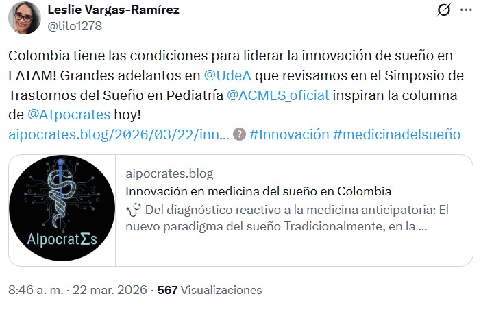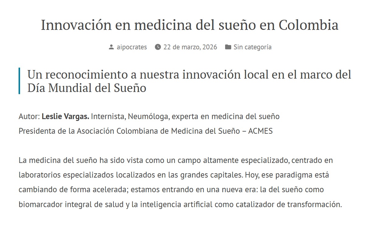 Activity: As part of the World Sleep Day 2026 initiatives, AIpocrates contributed through the publication of a thought leadership column titled “Innovation in Sleep Medicine in Colombia”, authored by Leslie Vargas, President of the Colombian Association of Sleep Medicine (ACMES).