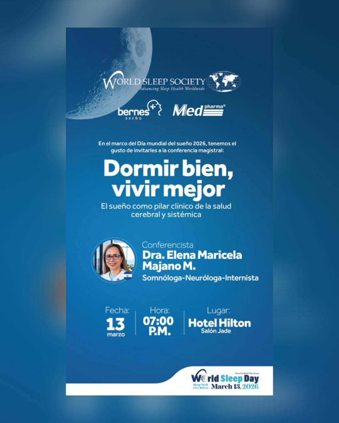 On the evening of March 13, we hosted our flagship World Sleep Day 2026 conference, a well-established and highly anticipated annual event. This took place at the Hilton Hotel in San Salvador, with the support of Medpharma Laboratories, and was attended by 75 physicians from multiple specialties.