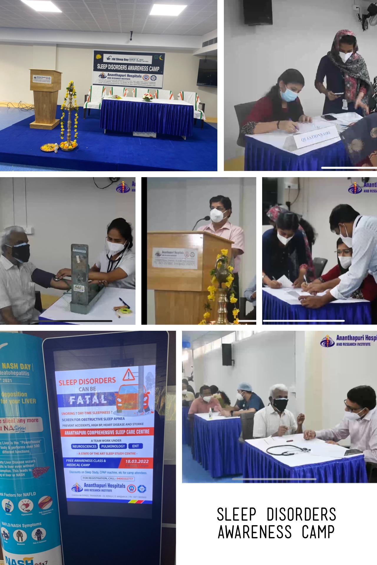 Activity: Free sleep medical camp and sleep awareness seminars were conducted for the public on the World sleep Day. It was a joint venture of various departments ENT, Pulmonology and Neuro science. Patient educational lectures were presented during the camp, which includes importance of sleep and sleep hygiene, sleep disorders, symptoms and signs of sleep disorders, Polysomnography test, early awareness and various treatment modalities. Different types education materials were given to patients and many of them were referred for Polysomnogarphy test. Apart from that various queries from the patients were answered by the experts.