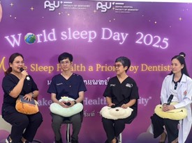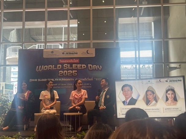 To mark the World Sleep Day 2025 “Make Sleep health a priority: the Faculty of Dentistry in Thailand made this day special event to encourage awareness for the public. We realized that dentists could have an essential role in Sleep Medicine especially in OSA which had consequences of major systemic diseases. Sleep bruxism was the one that causes the oral health deterioration that many people overlook. National Broadcast Television (NTB) and an online channel attended the event to make news.