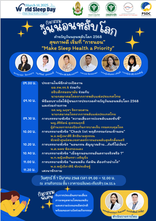The Thai slogan was used to promote better sleep over the country. Many hospitals held World Sleep Day activities to increase awareness in sleep health.