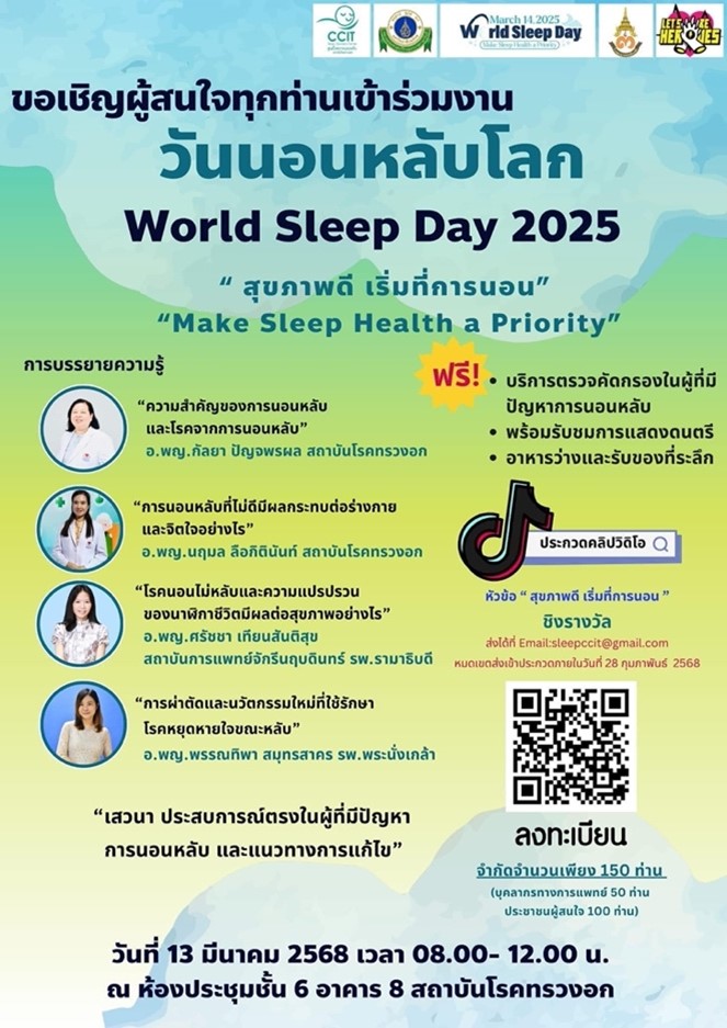 On March 4th, we held the 8th of Chula World Sleep Day 2025. Assoc. Prof. Chancai Sittipunt, MD (director of King Chulalongkorn Memorial Hospital), Assoc. Prof. Naricha Chirakalwasan, MD (president of Excellence Center for Sleep Disorders and president of Sleep Society of Thailand), Sutham Setthawong, MD (medical director of Benchakitti park hospital), Department of Health from Ministry of Public Health and sleep multidisciplinary team joined the event. There were sleep exhibition, acrylic painting by medical student, artwork from high school students and sleep counseling activities.
