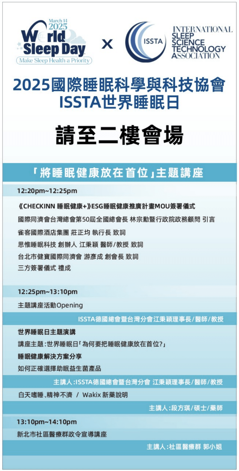 World Sleep Day in Taiwan attracted widespread media attention, highlighting the importance of integrating sleep health into company wellness and public health policies. Reports in The Observer and Taiwan’s Epoch Times highlighted the ESG Sleep Health Promotion Initiative, a collaboration between government agencies, leading companies, and healthcare organizations to raise sleep awareness. The initiative specifically targets primary healthcare professionals in New Taipei City and extends to a corporate partnership with CheckInn Hotels to address the sleep health needs of executives and employees of publicly traded and high-tech companies. A report by Tongji reporters also explores the theme “Why Should We Prioritize Sleep Health?”, discussing its impact on workplace productivity and the risks associated with issues like antibiotic overuse and sleep disorders. These initiatives reflect Taiwan’s ongoing commitment to elevating sleep health as a key component of public health and corporate responsibility.